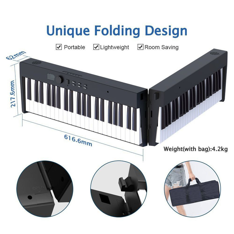پیانو دیجیتال تاشو Konix PJ‑88C ۸۸ کلید فول سایز، قابل حمل و حرفهای